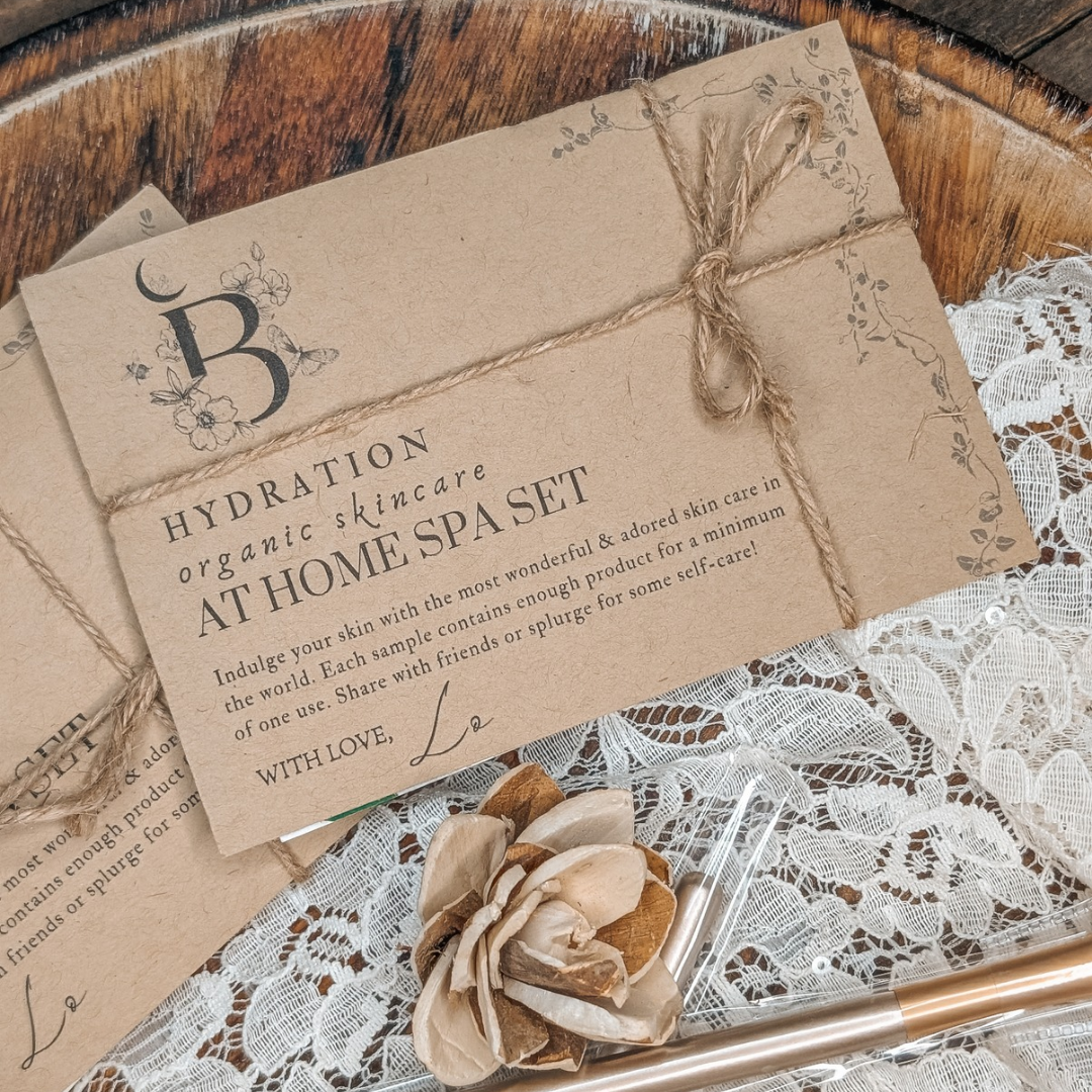 Each sample set is unique and comes with instructions for how to use. Best used as a set in order, as an intentional treatment ritual. Each sample is good for more than one use.